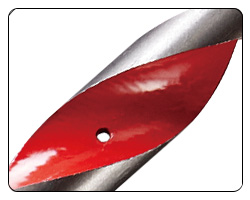 Equipado com um furo na ponta para passar o fio após a perfuração.