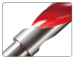 O orifício para fio na ponta da broca facilita a passagem do fio através de paredes, tetos e pisos.