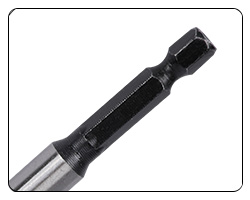 A haste hexagonal ranhurada evita o deslizamento no mandril ou na extensão da broca. Adapta-se a todos os mandris de troca rápida padrão de 1/4".