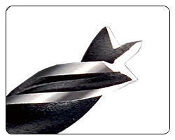 Os canais duplos proporcionam uma folga superior dos cavacos e os lábios bem definidos têm um leve ângulo negativo nas pontas dos lábios para marcar o furo para uma entrada limpa e paredes laterais lisas.