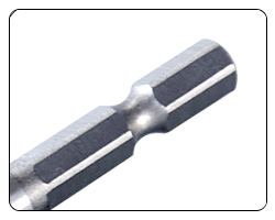 A haste hexagonal ranhurada evita o deslizamento no mandril ou na extensão da broca.